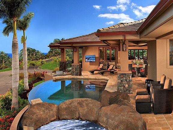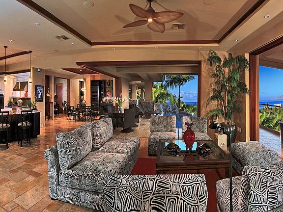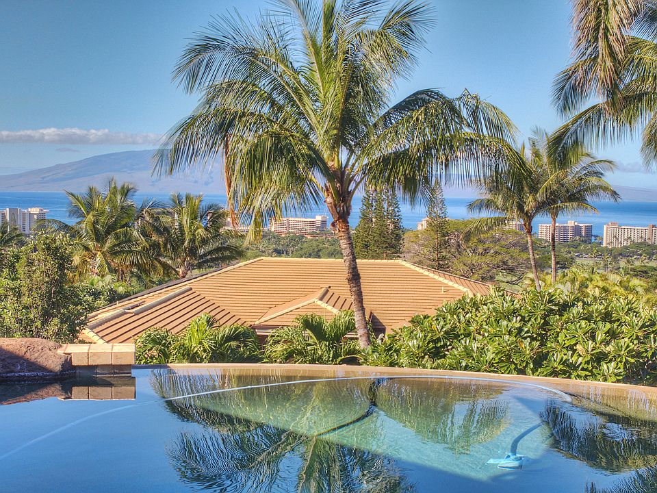 An Oasis of Luxury, Quality & Value - 93 West Mahi Pua at the Pinnacle! This Hawaii Renaissance Grand Award winning home offers three bedrooms, three full baths, 2 half baths, large office, spacious media room with section to add a fourth bedroom, expansive floor plan with disappearing sapili wood doors that open the kitchen, office, dining and great room to a beautiful private pool area with spectacular ocean views. Your personal oasis includes an infinity edge pool with cascading waterfalls, oversized Jacuzzi, 2 outdoor showers, lava rock privacy walls, built in Lynx BBQ and specialty lighting for romantic evenings. The in-suite bedroom downstairs with separate entrance provides privacy for extended family or visiting friends. Other features include motorized solar shades, home theater, butler's pantry and a lavish master bath with jetted tub, his and her's showers & WCs and private outdoor shower. The garage is fully equipped with extra storage to handle all the beach gear, boards, golf clubs, toys and cars. A separate golf cart garage at street level is always ready for that quick trip to the beach or cruise through Ka'anapali. Photo-voltaic system offsets electric bills. Located at the top of this prestigious neighborhood 93 West Mahi Pua exudes a feeling of luxury, quality, wellness and Aloha.