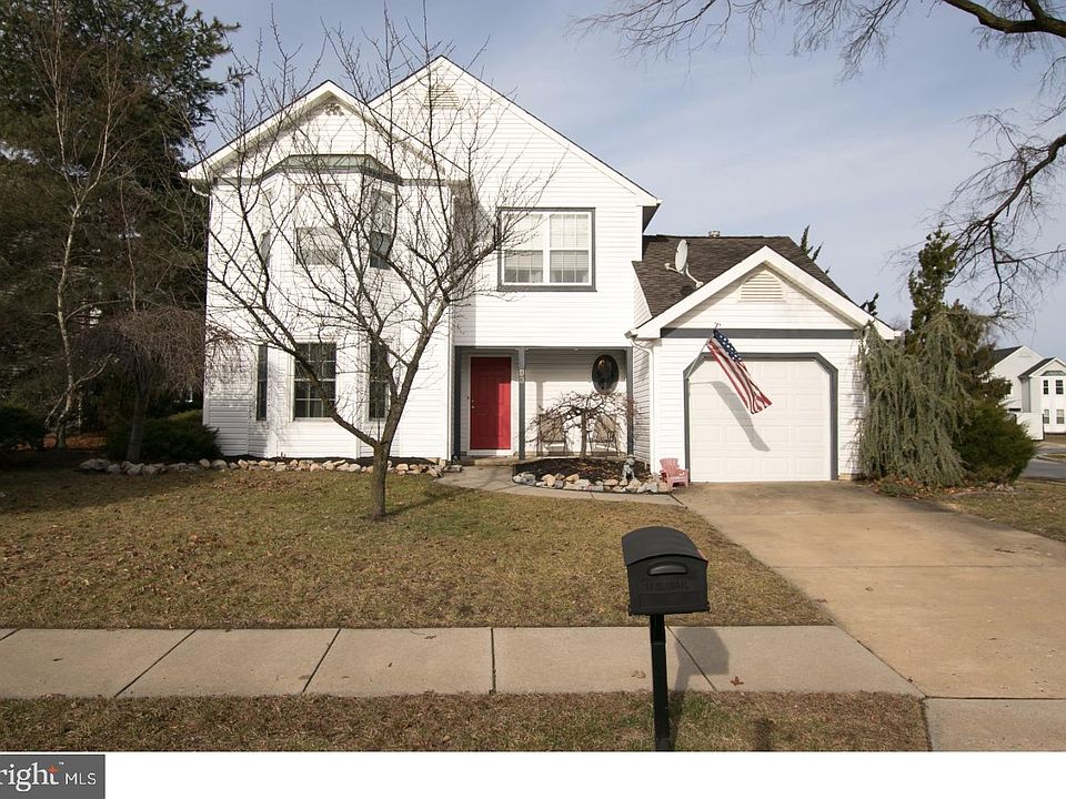 Welcome to Stone Mill Estates this home boasts impressive floor plan. A wood-burning fireplace welcomes you to the family room with cathedral ceiling, sliding glass door to the large deck, fenced yard with lawn sprinkler system. Family room is open to the eat-in kitchen, with newer stainless steel stove and refrigerator, & triple window offering views of the back yard. Upstairs find hardwood flooring throughout and a large master suite with cathedral ceiling, walk in closet, second closet, sink/vanity area separate from the from the bathroom with jetted tub, shower and toilet. This design to allows for 2 people to get ready for the day at the same time. Additionally two nicely appointed bedrooms (1 with laminate flooring & 1 with walk in closet) and a full bathroom. Plenty of storage in the storage closet and in the two attic spaces one accessible by pull down stairs. Home is situated on a spacious corner lot and has a covered front porch. Newer central air air. Roof and vinyl siding are about 8 years new, 1st floor windows are replacement windows. Lots of natural sunlight throughout the house. Great location & neighborhood - walk to shopping & dining and close to schools, major roadways & recreational facilities.