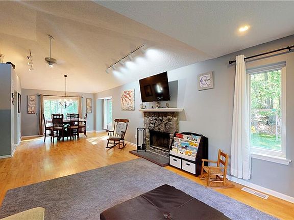 You are sure to enjoy this beautiful and private setting in a sought after neighborhood. Nestled on over three acres, this lovingly maintained Colonial will capture your attention The stone walkway invites you to the front door and upon entering, you will see the sun filled and open floor plan. Under a vaulted ceiling is the fireplaced formal living room and dining room with gleaming hardwood floors. The eat-in kitchen offers granite counters, stainless steel appliances, a pantry and breakfast bar. Just off the kitchen is the large family room with an additional fireplace, hardwood floors and sliders taking you out onto the expansive deck. Before heading upstairs, you will also find a bedroom and full bath on the first floor, perfect for visiting guests Upstairs is the luscious master bedroom suite - complete with a walk in closet, and master bath with a large tub, separate shower and double sink vanity - all under a vaulted ceiling. You will find two additional bedrooms and the third full bath upstairs as well. Recent updates include: freshly repainted interior and deck, new Anderson windows on first floor, newer furnace, hot water heater and well tank The landscaped grounds and large backyard is sure to be enjoyed all year Entertaining on this oversized deck and dining al fresco will make this your favorite place to be all summer long, while having your morning coffee or while stargazing at night When you visit, you will see and feel all the TLC throughout
