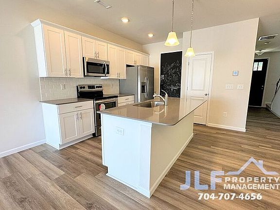 Come check out this one year old townhome in the heart of Concord. This is an end unit and has 3 bedrooms, 2.5 bathrooms and backs up to the greenway walking path. There is durable LVP throughout the first floor, stunning quartz countertops and stainless steel appliances in the kitchen. The home has a one car garage, fenced in backyard and comes with maintenance free living with lawncare included!