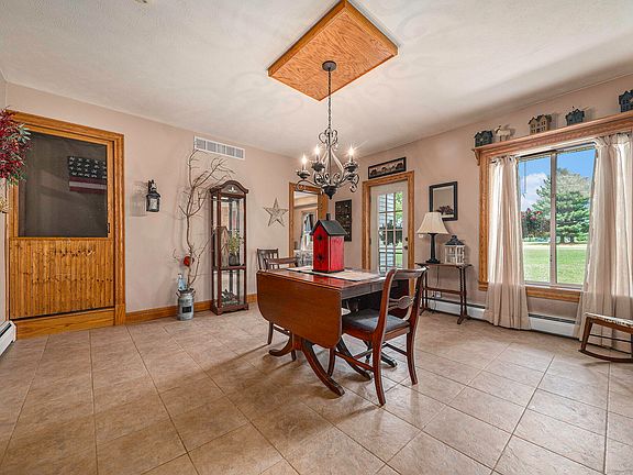 This Charming farmhouse sits upon the most beautiful 26 acres of rolling hills, ponds and pastures. The home has over 3400 Sq ft of living space with a 21x24 great room with a lovely fieldstone fireplace. The main floor master suite is your dream retreat to relaxation that includes a walk in closet and shower along with a luxurious jetted tub. The 2nd level features 3 bedrooms and a full bath along with a recreation room that could easily be that 5th bedroom for guests. Main floor laundry, and additional full bath and 2nd dinning room is a bonus charm to this treasure. The property features a 30x56 five stall horse barn, with a fenced in pasture. A 24x30 patio overlooking the ponds for all your entertaining and relaxation needs. Call and schedule your showing today!