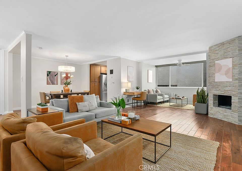Experience the best of Santa Monica living in this stunning 2-bedroom, 2-bath modern updated SINGLE STORY condo just two blocks from Ocean Avenue which has breathtaking Pacific Ocean views. Spanning 1,369 sq ft on a single level, this open-concept home offers a seamless flow from the spacious living room — featuring rich hardwood floors and a sleek stone-finished fireplace — into the dining area, perfect for entertaining. A versatile den/flex space is bathed in natural light from large windows, offering the perfect spot for a home office or reading nook. The kitchen is beautifully appointed with tile floors, caesarstone countertops, and high-quality stainless steel appliances, including a brand-new dishwasher. The expansive primary suite is a true retreat, complete with a walk-in closet, an additional closet, and a luxurious en-suite bathroom boasting dual sinks and premium finishes. A nice sized guest bedroom and a stylish second bathroom complete the layout. Enjoy the amenities, including an inviting pool, two assigned parking spaces, and an individual storage cabinet. HOA dues cover water, sewer, trash, building maintenance, and insurance (including earthquake insurance). All of this, just moments from Santa Monica Beach, the 3rd Street Promenade, Montana Avenue shops and dining, the famed Santa Monica Stairs, and within an award-winning school district.