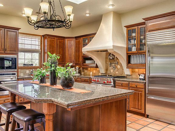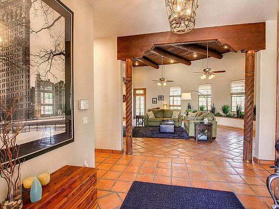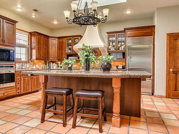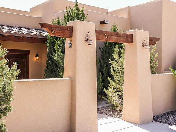 Constructed in 2007, this spacious single level home has many bells & whistles! Beautiful saltillo tile throughout the home is nicely accented by wood windows & raised ceilings. Large open kitchen has an oversized kitchen island, Wolf & Subzero appliances, separate wine bar, breakfast nook, 2 pantries & diamond plastered fireplace. Several skylights throughout the house provide a plethora of natural light. Master bedroom has wood vigas, tongue & groove ceiling, private fireplace, large walk-in closet, large master bathroom with his/hers sinks, garden tub & oversized shower with rotunda. All guest bedrooms have private access to courtyards or patios. Oversized utility room has excess storage & utility sink. Back patio wraps around the east side of the property allowing for panoramic views!
