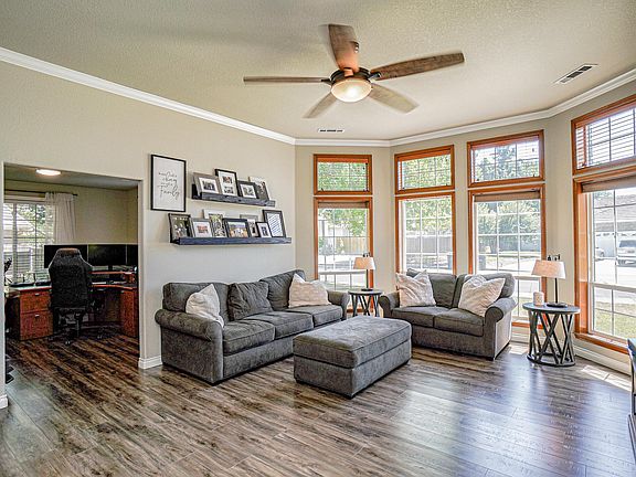 This Jackson Creek Estates home boast 1848 sq. ft of living space, featuring 3 bedrooms/ 2 bathrooms and a three car garage. As you enter the home you will notice a well planned out floor plan complete with a living room and a family room with a gas fireplace in the corner. There is a formal dining area located off of the kitchen that could be used as an office. On the other side of the kitchen is an eating area/breakfast nook. The kitchen has pristine granite counter tops and newer stainless steel appliances. There are abundant cabinets and counter space. This smart featured three bedroom home has a great master bedroom with double vanities, walk in closet and a faux marble shower. The guest bathroom has a shower/tub combo with an extra deep tub. Outside you will find a covered patio that is plumbed for gas. Mature landscaping, grapes and inground sprinklers in the front and back. There are raised beds for gardening. This home is well cared for and has a great location.