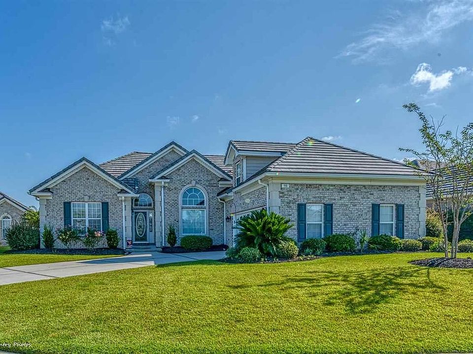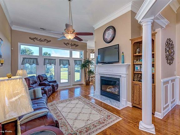 This magnificent estate home emanates quality from the moment you walk through the leaded glass front door. Immediately, your eyes are taken straight through the back windows to the spectacular view across the crystal lake with. Luxury 4 bedroom, 2 1/2 bath home in gated community on a quiet cul-de-sac right next to the amenities center. Lush landscaping with beautiful palm trees, custom curbs scaping around every flower bed around the home, lighted grounds and an irrigation system. Volume 12 foot, smooth ceilings, and huge windows with marble sills allow natural light to fill the home. You will notice so many beautiful upgrades in this home too numerous to list. Enjoy your expansive backyard with beautiful palm trees, and an oversized patio where you will enjoy the relaxation and views of the beautiful lake and sun. The home???s gourmet kitchen features 42??? fully trimmed, raised panel, staggered height with crown molding cabinetry, quartz countertops, eat-in kitchen, desk area, top of the line stainless appliances, glass backsplash and pantry. Formal dining room with wainscoting. Flooring is wood, tile and carpet in the bedrooms.. The entire home has been enhanced with professional crown molding throughout all rooms. The living room???s focal point is a cozy fireplace. The palatial master bath includes a double vanity, upgraded fixtures, and his and hers walk-in closets. There is a large garden tub and a huge marble walk-in shower with a seat. The oversized garage offers awesome storage capabilities. Such exquisite detail, this home offers solid core insulated seven lap siding, gutters all around, satin nickel fixtures and faucets. Lifetime guarantee on the 200 year clay tile roof. This home is in a perfect location which is on a lakefront street that ends in the cul-de-sac, just a short walk to the clubhouse with a beautiful pool, gazebo, and workout facility. Surfside Beach Club is one of the Grand Strand???s Premier gated communities, with wonderful ameniti