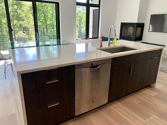 This river front property has many upgrades including a fireplace, washer / dryer and walk-in shower with European glass door, and a waterfall kitchen island.