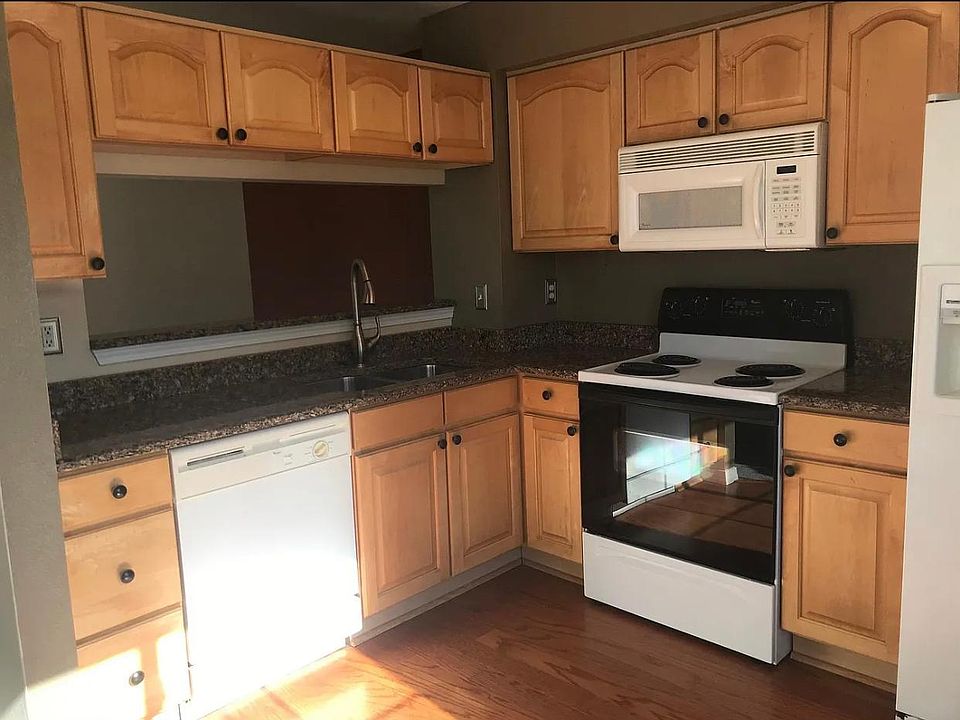 Freshly cleaned with a new stove and dishwasher. Large unfinished basement with washer and dryer. Corner unit with a nice private patio. Close to schools and park. Quiet community. Trash, water, and sewer paid for. Enclosed garage with lock, and private parking space. Short distance to shopping. Renter responsible for gas and electric. No smoking of any kind. No pets preferred. Small dog with strong vetting. Additional security deposit of $500 per pet. One year lease upon 1st month's rent and deposit.