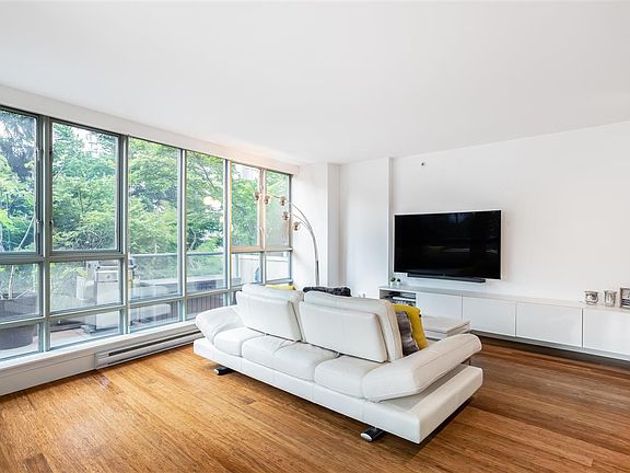Reset and rejuvenate with the perfect balance of central city convenience with natural green-space privacy and tranquility! A truly refined 3-bedroom CORNER UNIT featuring a breath-taking 241 sqft patio completely surrounded by dense,lush greenery. Spacious and modern Scandinavian-inspired open layout featuring a multifunctional floorplan for living and dining area with plenty of natural light all-year round. Gorgeous gourmet kitchen with premium European appliances, full-size fridge, and quartz countertops. Expensive upgrades are everywhere, including remote-controlled blackout blinds, hardwood floors, custom walk-in California closet, rainfall-shower, heated floor bathrooms, and MUCH MORE! Walking distance to Yaletown/Vancouver City-Center/StadiumChinatown Skytrain Stations and seawall!