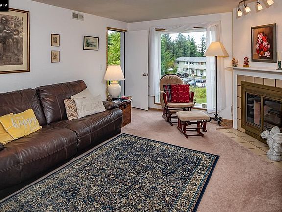 Mid-level, two bedroom and one bath Skyline Condo unit offers over 900 square feet of clean and comfortable living space filled with natural light, a cozy fireplace, private deck and a walk-in laundry room. A single covered parking space with a private storage locker is directly outside of the front door, providing quick and stairless access to your car from your automobile to your unit. The complex offers a large yard area below for recreating or dog walking. Affordable condo fees help make living in this 'no-steps' unit a breeze.