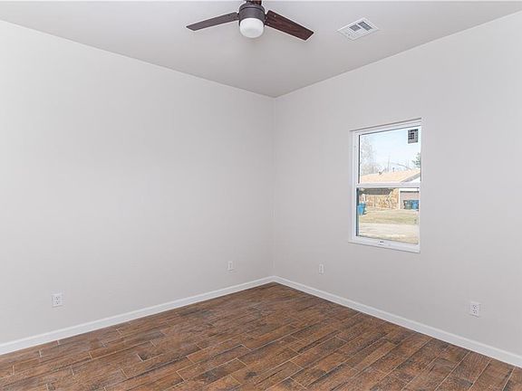 This stunning new construction home, built on re-inforced foundation, sits on a cul-de-sac lot with access to Poore Park. 3 bedrooms PLUS a designated office space/study/flex/bonus room. So many upgrades including large privacy fenced yard, gutters, small shed, smart lock, smart thermostat, classic wood-looking tile flooring, gorgeous granite countertops, white shaker cabinets complete with modern black and gold finishes. The designated office space is just off the entry with the living room, kitchen and dining all open concept. The primary suite includes a large closet, and an en suite with a double sink vanity, granite counters, and large subway tiled shower. Enjoy quiet evenings out back in the fully fenced yard with a gate for access to the walking trails and playground and a storage shed. Minutes to I40, Tinker Air Force Base, Rose State College, Sams Club, shopping, and plenty of restaurants.