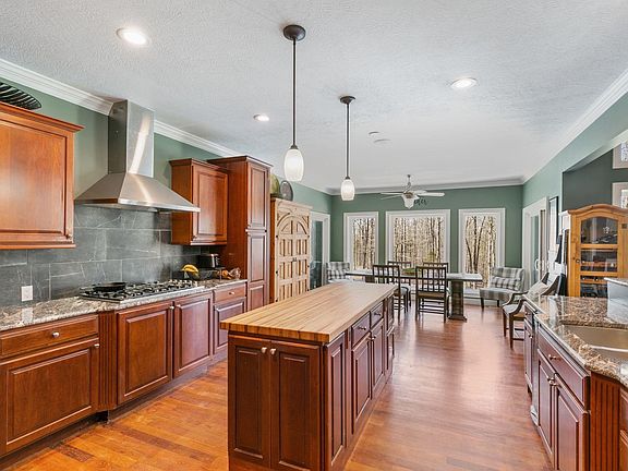 Custom Built Home! ICF Built. Gunite Pool. 56 Acres M/L. 42x52 Barn. 3 bedrooms, 2.5 baths on main level. Upstairs are 4th bedroom or recreational room and office. Open floor plan. Kitchen is a chef's delight. Very spacious with a place for everything. Breakfast nook overlooking the beautiful pool area. Great room features vaulted ceiling with fireplace. Formal dining. Screened porch that can be accessed from kitchen or owners bedroom. Home has been updated, tastefully painted, and is super clean and well maintained. Private and secluded with winding driveway. Its a rare find with it's insulated concrete form construction. Barn has 200 amp power, 14x16 work shop area, a framed 2 bedroom apartment. Plumbed for kitchen , bath, and laundry. Stake your claim. No restrictions.