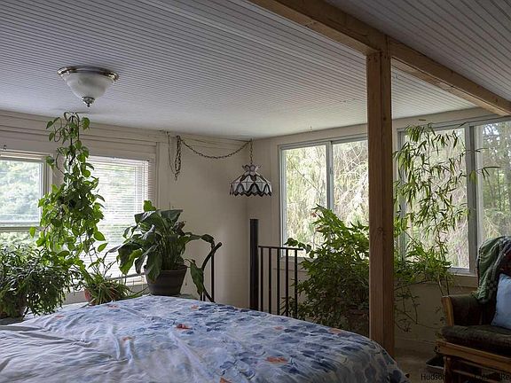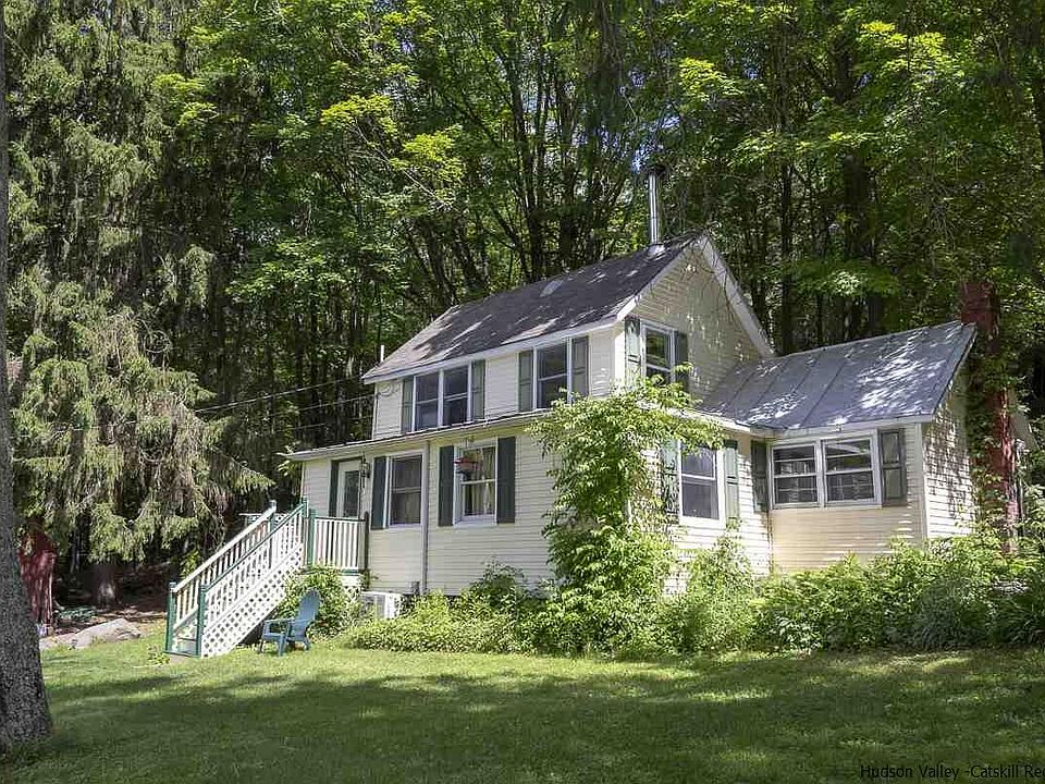 1876 Farmhouse with many of its original details and the space to make this your forest retreat. Wide plank floors in living room and exposed beams through out. Large room off the living room was used as a bedroom and smaller room as a office. Pellet stove for heat in addition to wall units. First floor bathroom and spiral stairway that leads to a larger bedroom with large open windows to bring in all the light. Small loft space offers insight into a cathedral ceiling upstairs. The possibilities are endless. Beautiful large deck off the kitchen for entertaining and .75 acres to let your imagination go wild.