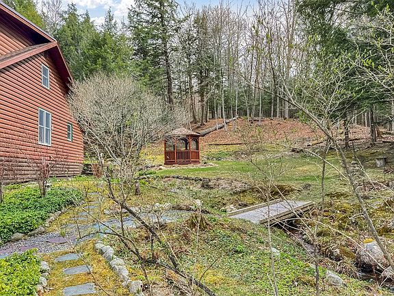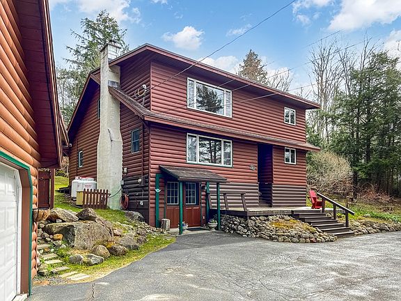 Turnkey Adirondack style 4-bedroom home bordering state land, and with Deeded Lake Rights to a small sand beach on Long Lake. This well-trimmed home sits near town on 2.5 mostly wooded acres. It's quiet in the backyard, except for the stream that ripples by the flower gardens. Inside, cherry floors cover the family and dining room, kitchen, and two bedrooms. The full bath has tile. Upstairs, there's a large master bedroom with two walk-in closets, a full bathroom, and a guest bed. In the full basement, there's laundry, lots of storage, and workspace. Keep warm with a propane boiler or an outdoor wood boiler. If the power fails, there's a standby generator. The 2-car garage stores toys, and the loft could be used for sleeping. Come see a beautiful house, and see if Long Lake could be home.