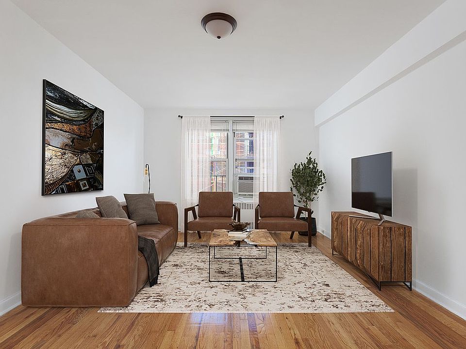 Open House by appt only. This bright and spacious 1 bedroom Coop is on the Top Floor of a well maintained elevator building. There is a large living room, large bedroom, and a separate dining area connecting the galley kitchen. The bathroom is in excellent condition and has a window. This unit has tons of storage with 5 closets and hardwood floors throughout. Very low maintenance that includes even the electric! Please check out the floorplan and 3d tour attached to the listing.