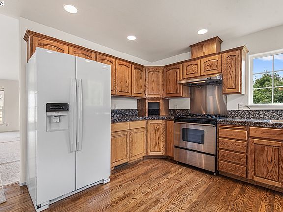 This 1804 sq. ft. custom home offers spacious living with vaulted ceilings, granite countertops and custom Boman oak cabinets. Enjoy the convenience of a double garage, a fully fenced yard and a deck with built-in seating. Perfect for outdoor relaxation. Located near the scenic golf course, this home blends style and comfort in a prime location.