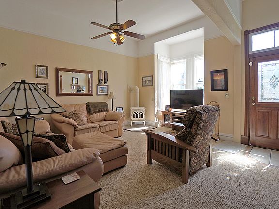 This beautifully appointed, well-maintained Victorian retains much of its original character with all the modern conveniences you'll enjoy. Large formal dining room, custom cherry wood kitchen cabinets, Corian counter tops, Beautifully landscaped grounds with drip watering system, now in full bloom. Newer roof, furnace, and water heater, Recently painted exterior. It even has a white picket fence. This home is a real gem.