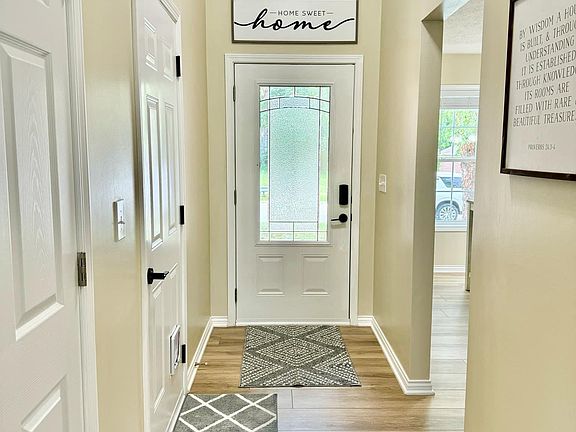 Completely updated ranch home in Fawn Creek Estates! This brick home features a split floor plan, and 3 bedrooms with 2 full bathrooms. The kitchen features wooden cabinets, updated countertops, and black appliances. There is an inviting bar that is open to the living room. The large great room is perfect for entertaining, and offers a nice view of the backyard. The primary bedroom features a reading nook, large bathroom with updated vanity and toilet, as well as a walk in closet. The other side of the house holds 2 more bedrooms, and an updated bathroom. The attached garage is clean, and has a pull down screen for additional living space. This home sits across the street from the neighborhood stocked pond. Updates per seller: new flooring throughout, new bathroom vanities, new toilets, all new light fixtures and outlets, new privacy fence, fresh paint.