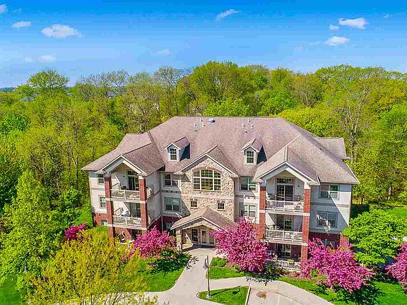 Smart top-floor 2,589 sq-ft 2-bdrm (1 addtl nonconforming BR), 4-bth, 2-study home w/ 2 inside prkng spaces/storage units, univ design, bldg elev, comm rm. Vaulted & 9' ceilings, 2 FPs, zoned HVAC. Kitchen: white laminate cabinets & quartz countertops, Dacor gas cooktop/grill, pantry, & laundry rm. Built-ins, crown moldings, oak floors w/ herringbone inlays. View river valley from 2 large porches atop lodge-like bldg., forest-protected from other developments. Near amenities, on bus route. NEW INT PAINT.