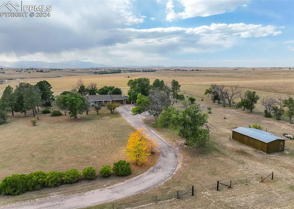 A MUST SEE! - Excellent Location on this 'Truly Breathtaking & Peaceful Setting' and Gorgeous Nearly 9 Acre Property Located at the 'End of Cul-De-Sac' Surrounded by 100's of Mature Trees & Bushes w/Grass & Meadows and Most Importantly Fabulous Views of Peak & Mtns!! Nice 33x23 2-3 Stall Barn for Many Uses as Well! This Property can also be Purchased with the Adjoining 13+ Acre Parcel @ Extra Cost (See MLS) for a Total of 22+ Acres of True Paradise!!! The Home & Yard are Exquisite & Meticulously Maintained w/New Exterior Paint & Gutters, Newer Roof and Newer Engineered Septic. The Interior of the Home is Amazing w/Large Entry & Living Room, Adjoined by Spacious Dining Area w/Wood Burning Fireplace & Large Updated Kitchen w/New Refrigerator & New S.S. Appliances & Counters *3 Main Level Bedrooms to Include Large Master w/Private Bath, 2 Extra Bedrooms & Guest Bath. Walk-Out from Kitchen/Dining Room to Covered 30x10 Patio Deck into Beautiful/Serene Landscaped Fenced Yard w/Gazebo & Mountains in the Backdrop. Lower-Level Perfect w/a Huge Family Room w/Woodburning Fireplace, Large 4th Bedroom & Remodeled 3/4 Bath Along w/Large Storage Room or Potential Expansion for 5th Bedroom and Laundry!!! Garage is a Mechanics Dream w/Separate Workshop & Fitting 4 Cars Total!!! Perfect, Perfect, Perfect, Perfect Home/Property Just 15 Minutes to Colorado Springs & Falcon!