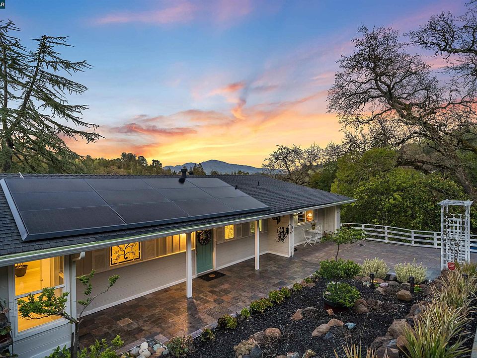 Experience breathtaking Mt. Diablo views from this prime location close to downtown. This immaculate home features three bedrooms, updated kitchen with granite counters, stainless-steel appliances, remodeled bathrooms, and newer flooring. The converted garage offers a second living area with full kitchen, bath, bedroom, and laundry. Professionally landscaped yard with drought-tolerant plants, gazebo, and Tesla solar panels and powerwall. Enjoy easy access to trails, award winning schools, and restaurants. Ideal for multi-generational living or Airbnb. Additional storage in walk-in basement below ADU. An epitome of luxury and functionality.