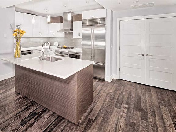 No detail was spared in this meticulously designed, LEED Certified , 2 bedroom & 2 bath home with 3 private balconies and one parking space. Three years young, Tribeca West captivates all upon entry with a stylish lobby, elevator, and solid steel & concrete construction. Enter the home be inspired by gourmet kitchen including two tone custom cabinetry, SubZero refrigerator and WOLF's cook top & wall oven, wine cooler, Miele dishwasher and Caesar (quartz) counter tops. Wrap around and appreciate the floating island while hosting an intimate soiree and display your delicious delights. Open floor plan enhances the living area where one may access the gorgeous shared bath or step out onto the 1st balcony includes a direct gas line connection waiting for your BBQ to start entertaining. The chic master bedroom includes floor to ceiling windows, extended reading bay framed by glass, private balcony and custom walk-in-closet. Feel rejuvenated inside the spa-like master bath complete with a modern floating vanity, well appointed fixtures, and frameless shower. The spacious 2nd bedroom includes last the balcony and fully equipped walk-in-closet. Additional home features are 6.5 inch wide plank hardwood floors, Central A/C, Budd Central Vacuum, recessed lighting, Intus energy efficient windows, custom blinds, in home washer/dryer and "Smart Home" options. Find additional storage options at the front of your parking space. Located in the heart of Hoboken allows easy access to all modes of transportation, shopping, and surrounded by multiple parks. Do not miss this rare opportunity.