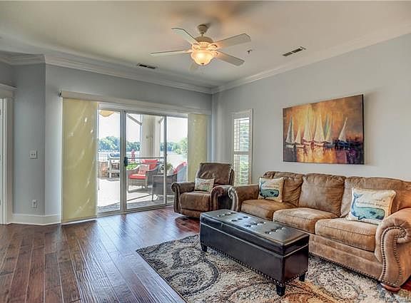 This is a RARE first floor, waterfront, luxurious condo with deeded BOAT SLIP in Davidson. Owner has installed new hardwood floors, new kitchen, new guest shower, new fireplace surround, new carpet, new paint, new plantation shutters, new solid core doors and trim, new HVAC and water heater (2016), and many more upgrades throughout. Steps away from the community pool and boat dock. Condo boasts an incredible outdoor patio with expansive views.