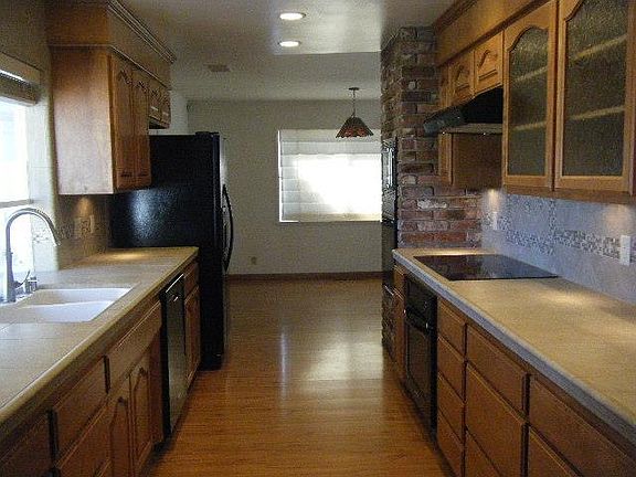 This is a turn key home. The nearly new kitchen has newer cabinets, canned lights and ovens and a cooktop stove that looks like they were never used. You can enjoy grilled steaks on your built in BBQ. The master bedroom has a walk in closet and a bathroom that has been redone. Lots of storage space lines the hallway to the bedrooms. There is hardwood under the bedroom carpeting. Doors out to the covered patio can be found in the family room and master bedroom. Low maintenance backyard.