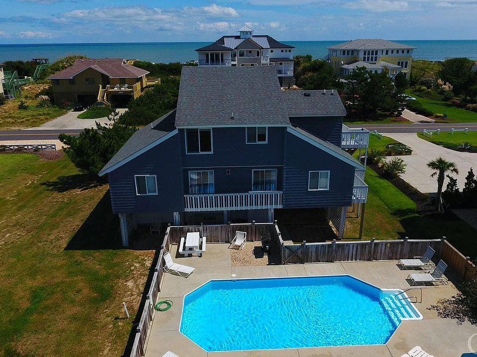 7 bedroom semi oceanfront home with great ocean views and 300' to the ocean access. Functional open floor plan with large bedrooms and space to spread out. New upper deck. Roof 2011. Large saltwater pool, hot tub. Game room with pool table, foosball table. Owner limits rents to June thru Sept--if opened up the home could produce $150,300. House sign "Corolla Otter" does not convey. County tax records have as a 7 bedroom and health department has on file as a 4 bedroom. This home is being sold "AS-IS"
