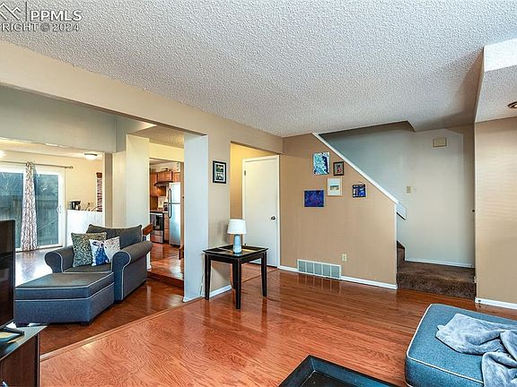 Beautiful move in ready town home close to Cheyenne Mountain, Fort Carson, downtown and so much more! As you enter the home you will notice expansive wood floors covering the whole main level and a unique and inviting open floor plan. The kitchen offers newer updated cabinets with SS appliances and a large usable pantry to top it off! Upstairs you have two large bedrooms with the primary bedroom featuring an attached full bathroom and walk in closet. The secondary bedroom is right next to another 3/4 bathroom making it a great kid room, guest room, or perfect for a roommate! Outside you will enjoy having your own enclosed concrete patio with mountain views ready for summer grilling and relaxing. With plenty of guest parking by the unit and an assigned spot, this home is accessible and ready for a new owner! Come take a look, you won't be disappointed!