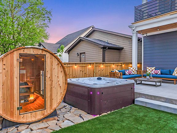 Welcome to The Morrison, a professionally designed four-bedroom home offering top-tier entertainment. This property features a game room with shuffleboard, pool table, and arcade games, a private movie theater with karaoke, and a speakeasy-style lounge. The backyard oasis includes a hot tub, sauna, fire pit, and more, making it the perfect group getaway. This home boasts a backyard oasis with a hot tub, barrel sauna, fire pit with Adirondack chairs, putting green, lawn games, and a BBQ grill. The interior features a movie theater room with a popcorn machine, karaoke stage, and board games, a game room with a pool table, shuffleboard, and arcade games, and a speakeasy-style lounge with a jukebox, poker table, and cocktail set-up. It also includes a dedicated makeup vanity for four, yoga mats, a modern fully equipped kitchen, high-speed Wi-Fi, smart TVs throughout, chic decor, and a laundry room with a washer and dryer. Dog-friendly with a $150 pet fee per stay for up to two dogs with no breed or weight restrictions. Nestled in the charming Hope Gardens neighborhood, this location offers easy access to North Gulch, Capitol View, Germantown, Nashville's Farmers Market, and Marathon Music Works. Enjoy the proximity to downtown while being tucked away on a peaceful residential street. Frankie Pierce Park, less than half a mile away, features a playground and dog park. Within a mile, you'll find dining and bar options, including local favorites like Geist, Mother Ruin, and Central BBQ. The home is conveniently located near the highway, providing quick access to major routes around the city. While insulated windows help reduce indoor noise, traffic noise may still be heard, especially in the living room and some bedrooms. The garage has been converted, so there are no designated parking spots, but free street parking is available. The neighborhood is experiencing growth, offering urban convenience and a residential feel. Quiet hours are from 10 p.m. to 8 a.m. Renters must be at least 21 years old, and guests under the minimum age must be accompanied by a parent or legal guardian. No smoking is permitted on the property, and a cleaning fee of up to $500 may be charged for violations of house rules or excessive cleaning required. A $400 fee will be charged if glass or other substances are found in the hot tub. High-speed Wi-Fi is available throughout the home, and smart TVs are easily connected to all your favorite streaming apps.