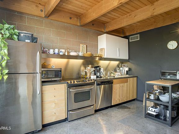 Don't miss this unique loft style work/live townhome in the Garfield Historic District. Designed by award winning architect Michael Underhill, modern convenience meets timeless industrial design in one of downtown's hottest neighborhoods. This larger plan has private garage plus office/bedroom/laundry on first floor, living/dining/kitchen/full bath on second, and 2 bedrooms plus master bath on third level.Masonry construction, polished concrete floors, oversize windows, exposed tongue and groove and beams ceiling on second level, sleek baths, skyline views. Many exciting design possibilities for this space.Zoned for home office.You even have outdoor space! Great spot in one of few truly walkable/bikeable neighborhoods. Welcome Diner, Gallo Blanco ,Roosevelt Row are blocks away!