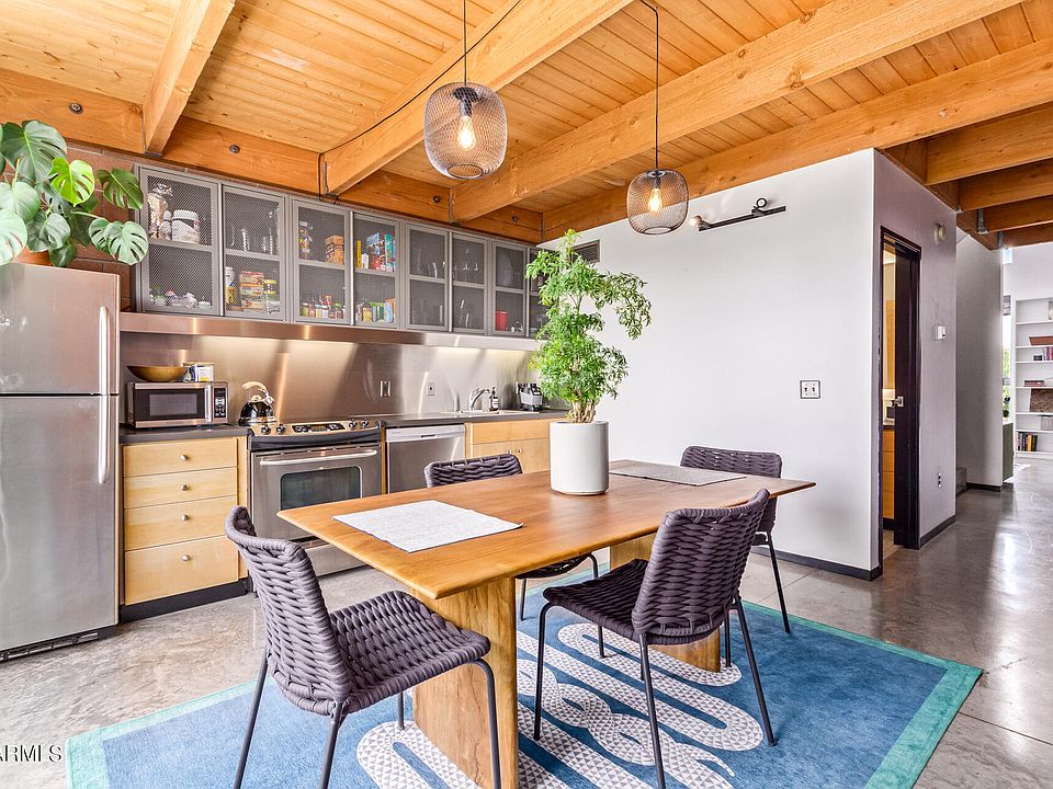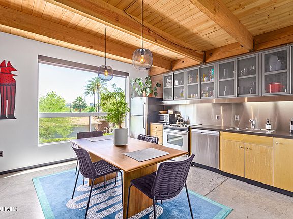 VERY RARE Opportunity to own a true loft in the heart of Downtown Phoenix. Conveniently located within walking distance to everything downtown has to offer... restaurants, shops & entertainment. Or, hop on the easily accessible freeways or light rail and get anywhere in the city quickly. Designed by the acclaimed architect, Michael Underhill. Using polished concrete, exposed beams and brick along with metal accents for those with a discerning taste for a timeless industrial vibe with a hint of modern convenience. Upon entering this tastefully decorated home, the abundance of natural light, 20' ceilings, floor to ceiling windows and incredible panoramic views will captivate you. This meticulously cared for home boasts 2 bedrooms, 2 bathrooms, a private 1 1/2 car garage along with an additional assigned space for a second car. Washer & Dryer can easily me moved indoors with hook-up already attached. This is a rare opportunity and a MUST SEE!