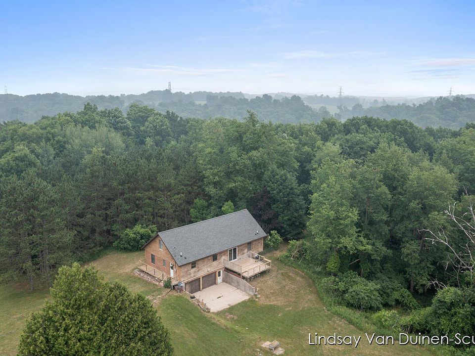 If you've been looking for your own little piece of paradise yet close to the city this is it! This beautiful 19.48-acre haven features rolling hills and pasture area plus a large section of woods. This custom-built Log A Frame home with attached 2 stall garage and outbuilding is a nature lover's paradise. Whether you love to sit on your back deck and watch wildlife, or you've been searching for farming or hunting land this property is for you. This home features an open floor plan with soaring ceilings making the living space cozy and inviting. The spacious kitchen has plenty of counter space for every chef plus has solid wood cabinetry, Formica countertops, new sink and faucet plus a peninsula with bar top seating. Off the dining area, is a new slider to a spacious deck overlooking the peaceful and secluded wooded acreage. The living room has an expansive window for lots of natural light and for star gazing plus new stairs to the yard. The main floor features a primary suite with private attached bathroom with new toilet and walk in closet. The other side of the home has 2 main floor bedrooms that are good sized plus large closets and is separated by a second full bathroom with new toilet.
