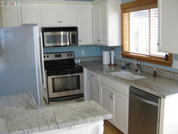 Beautiful beach home just across the road from 7 miles of sandy beach. Enjoy the ocean breeze from the large deck or cozy up to the fireplace in the living room. There are 2 master bedrooms, granite counters in the kitchen, a wet bar in the family room, and built in VAC!