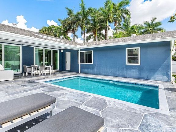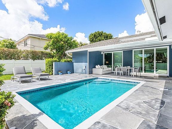 Courtesy of One Sotheby's International Realty Exclusive East Boca Raton 7-month furnished rental available Oct 1. This beautifully renovated 3BR/2BA pool home offers a spacious split floor plan, designer kitchen with large island, stainless appliances, and custom storage. Expansive sliders fully recess for elegant indoor/outdoor living. Luxe Toto Neorest toilets in both baths, impact windows, and automated pool screen. Lush private yard, resort-style pool, and oversized circular drive. Garage can convert to 4th BR. Prime location near Mizner, FAU, beaches, fine dining, and worship.