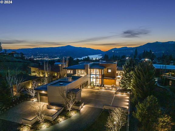 Welcome to unmatched luxury in the spectacular Columbia River Gorge. This stunning estate has created a singular residential experience. Take in panoramic views from every room with meticulous attention to design, craftsmanship, and use of exquisite finishes. This home resides atop a protected meadow that overlooks the majestic Columbia River Gorge and is three minutes from the vibrant town of White Salmon, WA. You'll love the spacious floor plan, soaring ceilings, and walls of windows that seamlessly merge indoor and outdoor living. Gourmet kitchen designed for form and function, with top-of-line appliances, three dishwashers, and a butler's pantry. Lavish living areas, fitness studio, and primary suite offer breathtaking views, a walk-in dressing room and shower, plus a soaking tub. Custom cabinetry, built-ins, art nooks throughout two levels of organized living, and Lutron whole home lighting, shading, and audio automation are accessible from your tablet or phone. Attached 1200 sqft, heated, 4-car garage, with two Tesla chargers, plus exterior RV parking with full hookups. Entertainer's dream year-round, inside and out. Live your lifestyle in style.