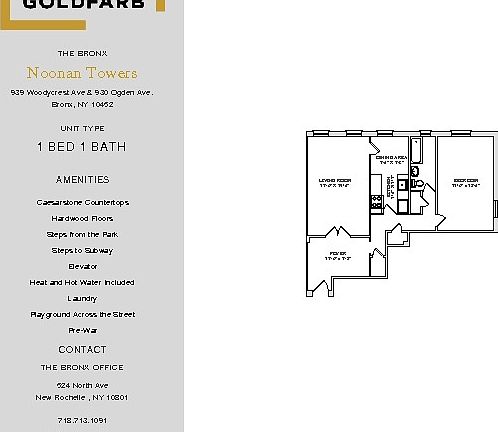 1 month(s) free on a 12 month lease rent is $1,580 net effective rent is $1,448. (promotions apply to new residents and immediate move in only) Apartment Description: Unit will be available starting September 1st, 2018. Contact us for more information or apply on line to begin the leasing process. "Pictures represent similar renovations and finishes." Building Description: Located just minutes away from the renowned Yankee Stadium, Noonan Towers maintains an elegant prewar facade with a lobby boasting intricate decorative moldings. These apartments feature on-site laundry facilities and a live in resident manager who helps maintain the pristine condition of the building. The beautiful building features apartment units with hardwood floors, spacious kitchens and immense sunlight. Legend has it that the iconic Yankee baseball player, Babe Ruth, once lived in this building. Our Bronx apartment buildings are conveniently situated near local buses and the B and D trains, creating an easy 15-minute commute to Manhattan.