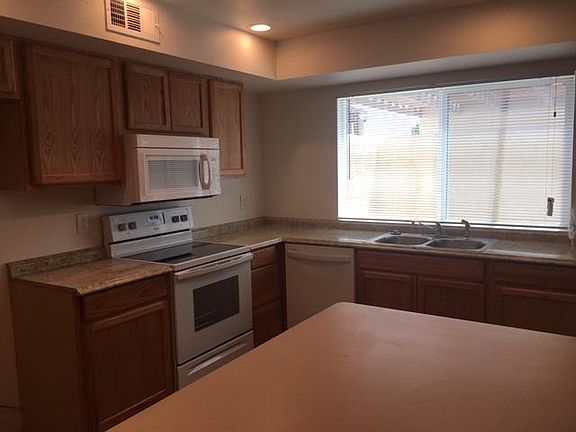 This condo is very spacious. 3 bedrooms upstairs, 1 bedroom/office or den area downstairs. Mini blinds on all windows. Fireplace is for decoration only, not to be used. Nice enclosed patio off the kitchen. Laundry hookups in the garage. This condo is in a gated community. Owner pays HOA fees and trash is included in that fee.