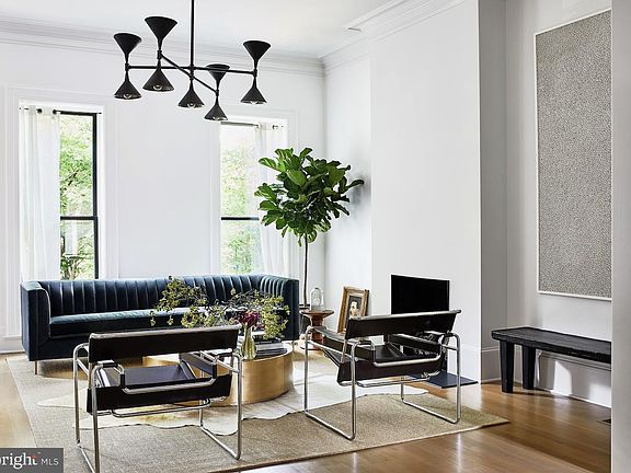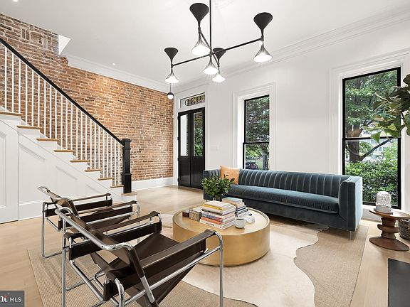 Truly stunning residence on charming block near Logan Circle. Impeccably renovated down to the brick, this breathtaking home features 3 bedrooms 2.5 baths plus a lower level Jr 1 BR 1BA income unit. As you enter you will be welcomed by an open floor plan featuring gorgeous hardwood floors throughout and soaring ceilings. The first floor expansive space is filled with light and allows for a formal sitting area around a gorgeous fireplace, and a large dining area with separate wine cellar - a dream layout for hosting unforgettable gatherings. Additionally, the entire house has been wired with Sonos speakers equipped with smart switches seamless connectivity and modern conveniences. Beyond the dining area is a bright open kitchen with a huge island with plenty of seating, featuring Thermador appliances, paneled refrigerator complimented by custom cabinets, and marble counters. The kitchen opens to an additional living space perfect for casual seating and watching TV. The main level also features a convenient powder room and additional hidden storage under the stairs . The rear living room is flooded with light from the wall of windows and French doors that open to a large stone patio with lush mature landscaping offering a serene outdoor retreat. Upstairs you will find a spacious primary suite with a large walk-in closets. There is also a gorgeous ensuite bath with a tub and a large shower complemented by real marble tile throughout, a double vanity, and separate water closet. There are two additional bedrooms and another full bathroom for guests on the second level. An additional highlight to this awe-inspiring home is the expansive private roof deck, providing beautiful city views. Complete with a convenient wet bar, this outdoor space is perfect for entertaining or enjoying a quiet evening under the stars. The separately metered lower level Jr 1 bedroom unit features high ceilings, a generous living room, open kitchen, and washer/dryer, providing additional income potential. Perfectly situated between Logan Circle and Shaw this stunning home is just steps from the 14th Street corridor shops and restaurant, and two metro stops less than 3 blocks away. No need for a car with a Walkscore of 96!