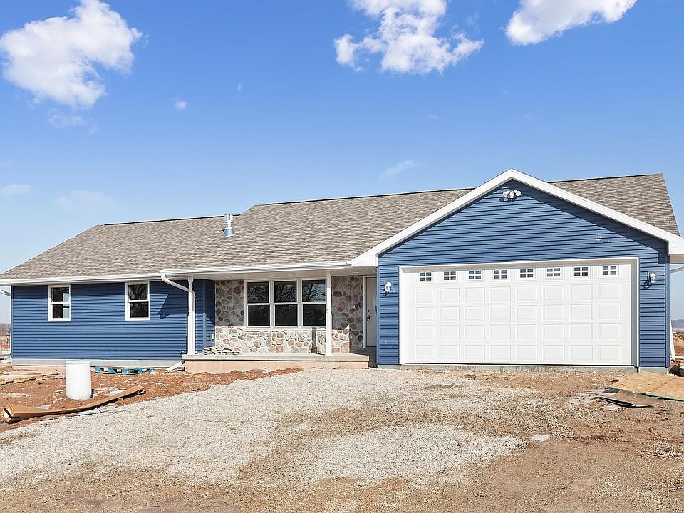 COME HOME TO the affordable MEADOWRIDGE floorplan designed & built by Hofkens Homes LLC. This plan has a 3 car tandem garage which ideal to store toys or the typical lawnmower & snowblower. 1st floor laundry room & closet by back door. Pocket door into the kitchen w/snack bar and open to the dining area w/patio doors out to the back. Open concept with living room w/gas fireplace, open staircase and 3/4 wall between KT & LR PLUS vaulted ceiling. Master suite w/full bath. 2 other good sized bathrooms. LL has egress windows & stubbed for future bathroom. Dead-end location and gorgeous views of the Lake Winnebago across the street. EST COMPLETION 1/31/2022.