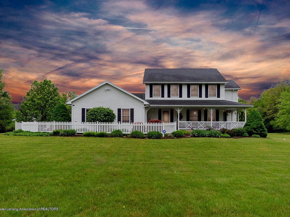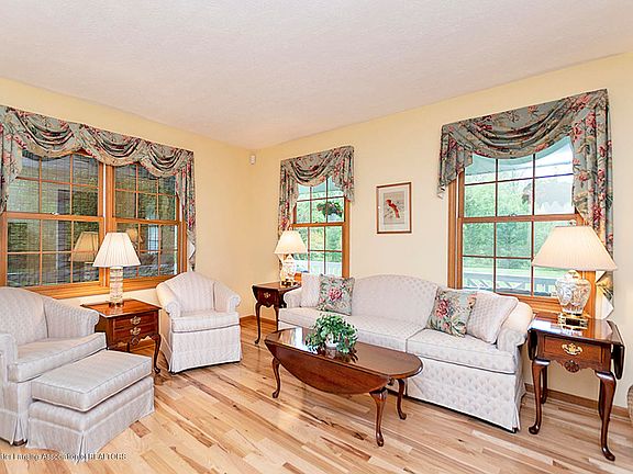 Peaceful, tranquil, executive country living! A winding driveway welcomes you to 930 Plains Rd., Mason, MI. With nearly 2900 sq. ft finished above ground, this beautifully updated 2 story home features hickory hardwood floors throughout (except 4 season room). A lovely, updated McDaniel's designed Honey oak kitchen with quartz countertops, tile backsplash and accent lighting overlooks the open concept informal dining area and expansive great room with brick woodburning fireplace. The bright4 season room is just off the informal dining area and leads to the amazing RanchLife vinyl pergola/deck & fencing- all perfect for highlighting the lovely landscaped yard! A large formal dining room with bay window leads to the front facing living room for added gathering space. A convenient 1st floor laundry and 1/2 bath are located just off the side entrance & the garage entrance to the home.