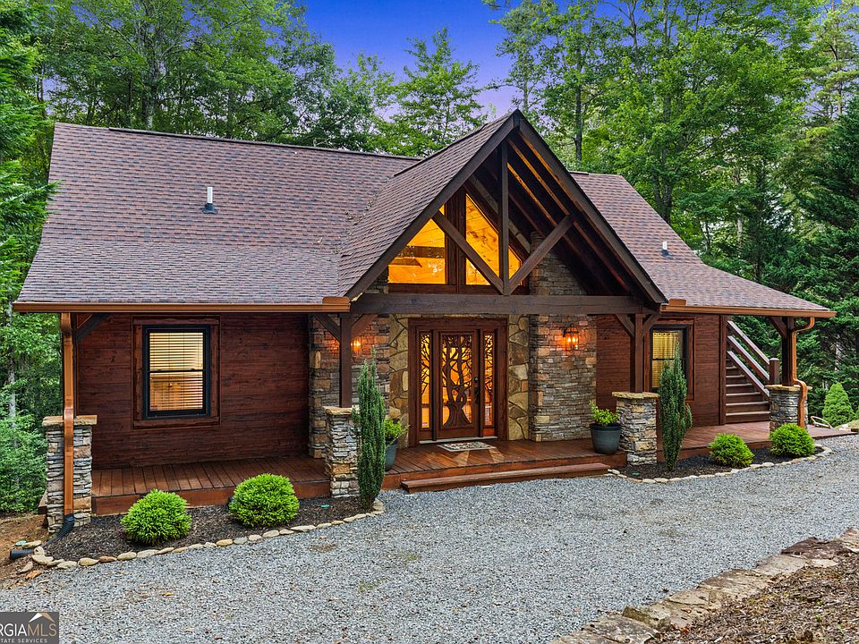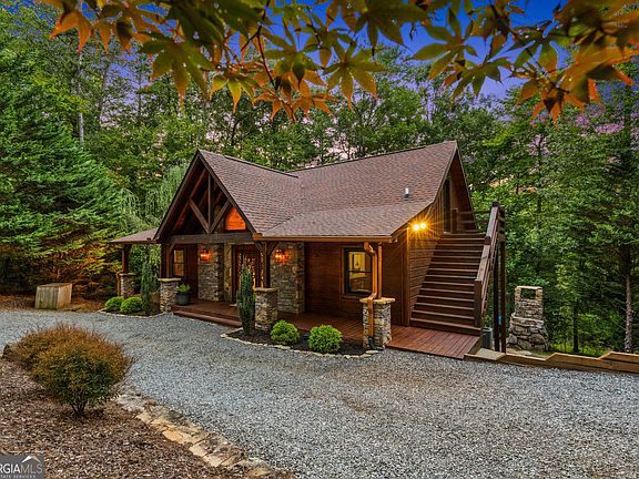 Have it all and then some! Welcome to "The Oasis" -- a uniquely crafted Keith Sumner Original home with rustic charm and modern amenities. Minutes away from Downtown Blue Ridge with all-paved access, this rustic compound is complete with main house and garage with studio. The main house is comprised of an open-concept main level, gourmet kitchen, dining area, comfortable living room with massive stone fireplace, covered party deck with an outdoor kitchen and fireplace, two primary ensuites, and views of the canopy from across the home. On the terrace level, find a bar, den, bedroom + bunk room, and walk out patio to a brand-new jacuzzi and third fireplace underneath the stars. Across the drive, find a finished and complete two car garage with a game room above. Sold fully-furnished, this home is ready for you! Would make for the perfect full-time home, second home or investment property. Call today for an exclusive tour.