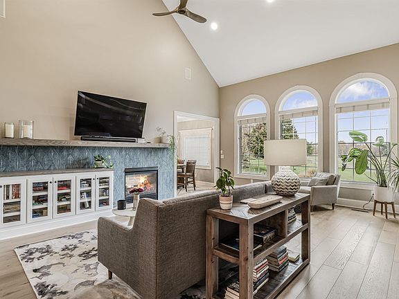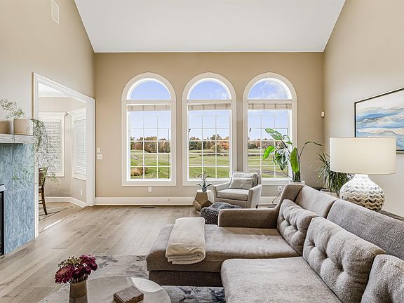 Fall in love with this spectacularly remodeled 4 BR, 4.5 BA, 4100+ sq. ft. home with breathtaking pond and golf course views, luxe modern upgrades inside and out, and located in the prestigious Chestnut Hills neighborhood. As you enter, you'll appreciate the easy, open floor plan with a fabulous foyer. To the right is a sophisticated remodeled home office featuring custom-built desks and bookshelves, perfect for productivity and style, and to the left is the elegant formal dining room boasting wainscoting and setting the stage for memorable gatherings. The expansive great room is a showstopper, featuring soaring ceilings and floor-to-ceiling windows that invite in natural light and frame the breathtaking views. Custom built-ins and a dual-sided fireplace adorned with hand-crafted tile add warmth and charm, all enhanced by beautiful new blonde hardwood flooring throughout. The dreamy, eat-in chef's kitchen is a remodeled masterpiece, complete with a fleet of high-end appliances, a generous center island, granite countertops, a pot-filler faucet, and ample on-trend cabinetry for all your culinary needs. Retreat to the stylish primary suite with serene water views, double walk-in closets, and a redesigned, perfectly appointed bathroom offering a tiled shower, soaking tub, dual vanities, and chic lighting & finishes. Upstairs, you'll find three spacious bedrooms (one with a well-appointed en-suite bath), walk-in closets and plenty of extra storage. The beautifully designed and remodeled lower level highlights a stunning temp-controlled wine room, an exquisite wet bar w/granite, ice maker, fridge and separate beer tap, a cozy family room w/built-in entertainment center, a full bath, and flexible recreation space for your lifestyle needs. Additional features and upgrades include an irrigation system, tankless water heater, new windows throughout, new professional landscaping and hardscape, a firepit, a patio for outdoor enjoyment, and an epoxy-floored garage. Located just moments from top-rated schools, shopping, and community amenities like tennis courts, a pool, golf course, and playground, this home offers the perfect blend of style, warmth and convenience.
