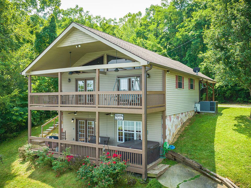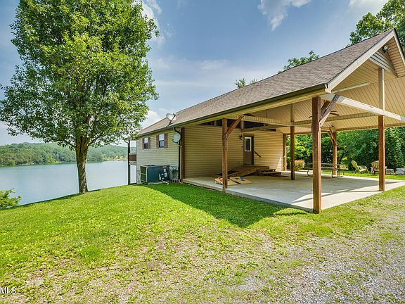 Rare opportunity to acquire a TURNKEY LAKEFRONT property with 2+ acres on the southwest corner of Douglas Lake close to Parkway. SHORT TERM RENTALS ALLOWED! Property features approx 200+ feet of water frontage, a small dock for your boat & jet skis, and a public boat ramp just short drive from the property. This two level home has two decks to kick back and soak in the lakefront views, as well as a fire pit, jacuzzi, and a Super oversized, covered, pavilion/carport, attached to the main level with two picnic tables for outdoor eating. There is also plenty of room to set up games and enjoy the family. Oversized driveway can accommodate Parking for 10+ cars. This FULLY FURNISHED home has one bedroom and one bonus room upstairs with 1 queen bed in each. You can also watch your favorite movie or game in the living room. The lower level offers extra sleeping, a full kitchen, full bath and a 2nd Bonus room with a large closet and 1 Queen size bunkbed. Very short drive to Parkway and all the Smoky Mountain tourist attractions to maximize both privacy and short term rental demand. Drone photography used in some listing photos.