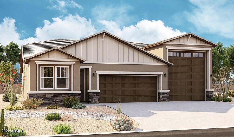 The ranch-style Pewter floor plan includes a very exciting feature—an attached RV garage! The interior of the home is just as attractive, and centers around an open layout with a great room with center meet doors to the covered patio, a dining area and a kitchen with a center island and a large walk-in pantry. Off the great room, the owner's suite showcases a walk-in closet and a private bath, and can be optioned with a door to the covered patio. Two additional bedrooms and a bath round out the residence
