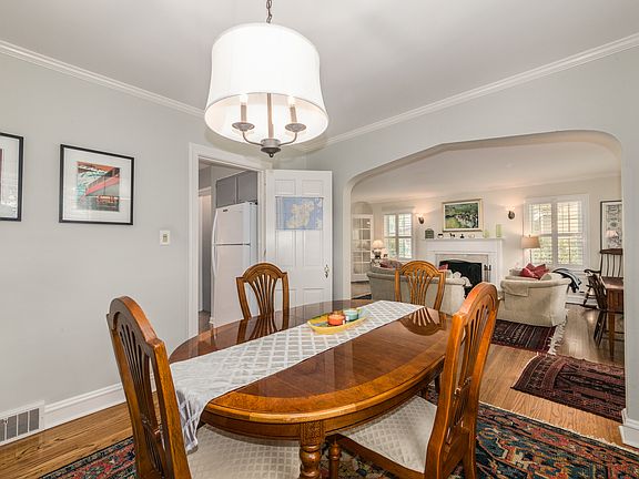 This gracious center entrance colonial is a charmer throughout with hardwood floors, lovely moldings and freshly painted woodwork, replacement windows w/ built-in mullions, built in bookcases and charming window treatments. The first floor features a foyer, living room with fireplace and large archway to formal dining room. The kitchen displays a breakfast bar plus a bright eating area with bay window and access to beautiful backyard and deck. The adjoining family room with a wall of bookcases and windows overlooks the lovely fenced in yard. A special feature in this home is a spacious 1st floor bedroom (used as the primary bedroom) and a full bath. The 2nd floor features 2 additional bedrooms, an extra room that would make a great office or nursery, and a full bath. The dry basement with overhead sewers has a rec room with 2nd fireplace, laundry and storage. The home has 2 zoned heat and air (furnace 2013), new roof and hot water heater (2023). This home will not disappoint - it is beautifully decorated and ready for you to move in and enjoy!