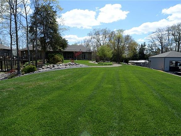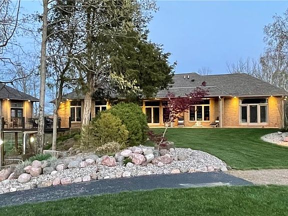 Secluded estate has 2.91 acres & 244 ft of waterfront. This home is an entertainer's dream! The main has open floor plan w/an updated kitchen w/SS appliances, wine bar & custom cabinetry in dining. The large master has spectacular lake views, jacuzzi tub & walk-in shower, large WIC w/W/D. The 2nd bed on main has a WIC & full bath. The walkout LL has large family room, 2 beds, 1 full bath& 1/2 bath. There is a large laundry rm & remodeled rec room with 2nd kitchen. The exterior boasts a hot tub, 3 season room with panoramic views, a dock with 2 electric boat lifts and 800 sf over water pavilion with roll up doors and kitchen. In addition to the heated 3 car attached garage, there is a 3 car heated and cooled detached garage with workshop.