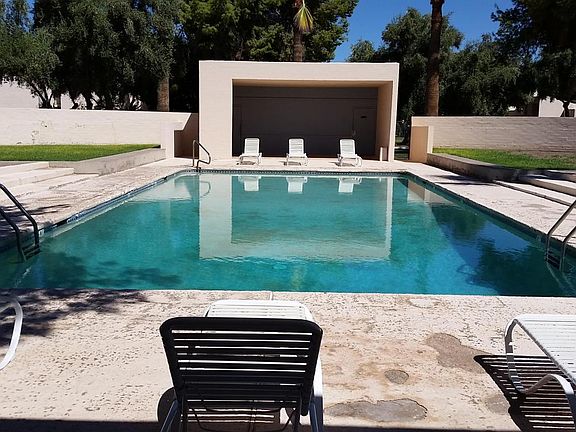 Al Beadle Architect ''Beadle Box'' Restoration pricing. What an awesome location. NO CRIME community. Unique wooden bridge over the water, on back to the beautiful swimming pool at the rear of the community. Master bedroom down stairs two bedrooms up. Only one mile to the north to the light rail. Attractive, clean, quiet, safe, Park like community. Great location near Mesa Fiesta District, Easy freeway access 202, 101, 60. Mesa community college, ASU. SHOPPING: Tempe Market Place, Mesa River-view, Mekong Plaza. Also near Banner Hospital Cubs Ball Park.
