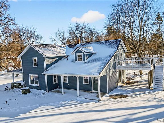 Your farmhouse dream begins here. This historic home is filled with charm and modern comfort, featuring a classic wrap-around porch, beautifully refinished original hardwood floors, rich architectural details, and a cozy wood-burning stove. Set on 2.5 picturesque acres, with newly landscaped grounds accented by hydrangeas and mulberry trees, the home is truly move-in ready and full of character. The inviting living room is the heart of the home filled with natural light. The dining room showcases built-in cabinetry, ideal for displaying your favorite pieces. The kitchen is both functional and stylish, featuring stainless steel appliances, abundant cabinetry, and easy access to a spacious patio—perfect for outdoor dining and entertaining. ( Seller offering 5k concession for new countertops) A versatile flex space on the main level provides endless possibilities and can easily serve as a fourth bedroom, home office, den, or playroom. Upstairs, you’ll find three bedrooms, including two generously sized guest or children’s rooms filled with natural light and room to grow. The primary bedroom is a true retreat, offering double closets, a bonus area for storage, a reading nook, or workout space, and an expansive private balcony where you can enjoy breathtaking sunset views. Outside, the property continues to impress with a heated garage, fenced garden area, original barn with electric and water, and open green space ideal for play, pets, or peaceful country living. This is farmhouse living at its finest—charming, functional, and ready to welcome you home.