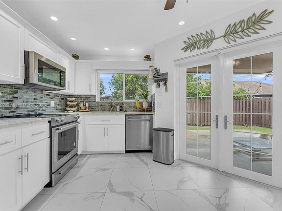 Imagine moving into a home where all the work is already done for you. This Pembroke Pines gem welcomes you with impact windows, upgraded bathrooms, designer doors, and built-in closets that keep everything organized. A remodeled kitchen with newer stainless steel appliances serves as the heart of the home, ideal for entertaining! Peace of mind comes with a 2014 roof, 2015 AC with new coil (2024), smart thermostat, & updated electrical panel. Step outside to a concrete patio framed by lush landscaping and sprinklers, perfect for relaxing or entertaining. With curb appeal and a prime location near Pembroke Lakes Mall, Shops at Pembroke Gardens, C.B. Smith Park, golf, top-rated schools, and major highways, this move-in ready gem offers both style and convenience. All it needs now is you.